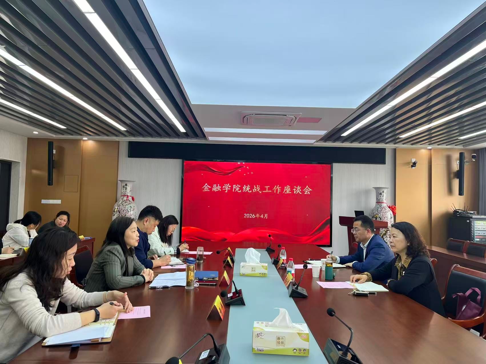 最后,李玉琴部长作总结讲话。她充分肯定金融学院统战工作成效,强调要持续强化政治引领,压实育人主体责任,健全常态化排查研判机制。立足金融专业特色抓实统战思政融合,严守意识形态安全底线多方协同联动,细化精细化育人服务,以高质量统战工作助力学校各项工作提质增效。