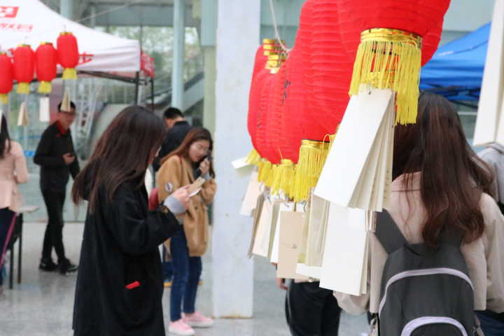 4月13日下午16:30,色情直播 扬子文学社主办的“深林其境”灯谜会在大学生活动中心广场隆重举行。这是扬子文学社在本学期举办的第一场大型活动,在历经一个月的宣传、准备后,终于与大家见面。