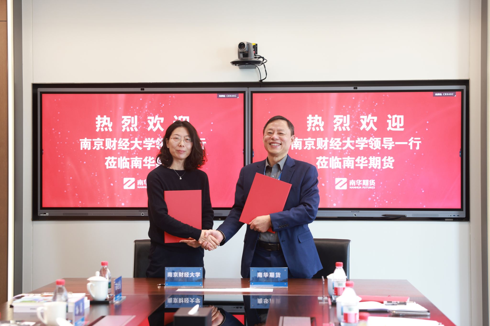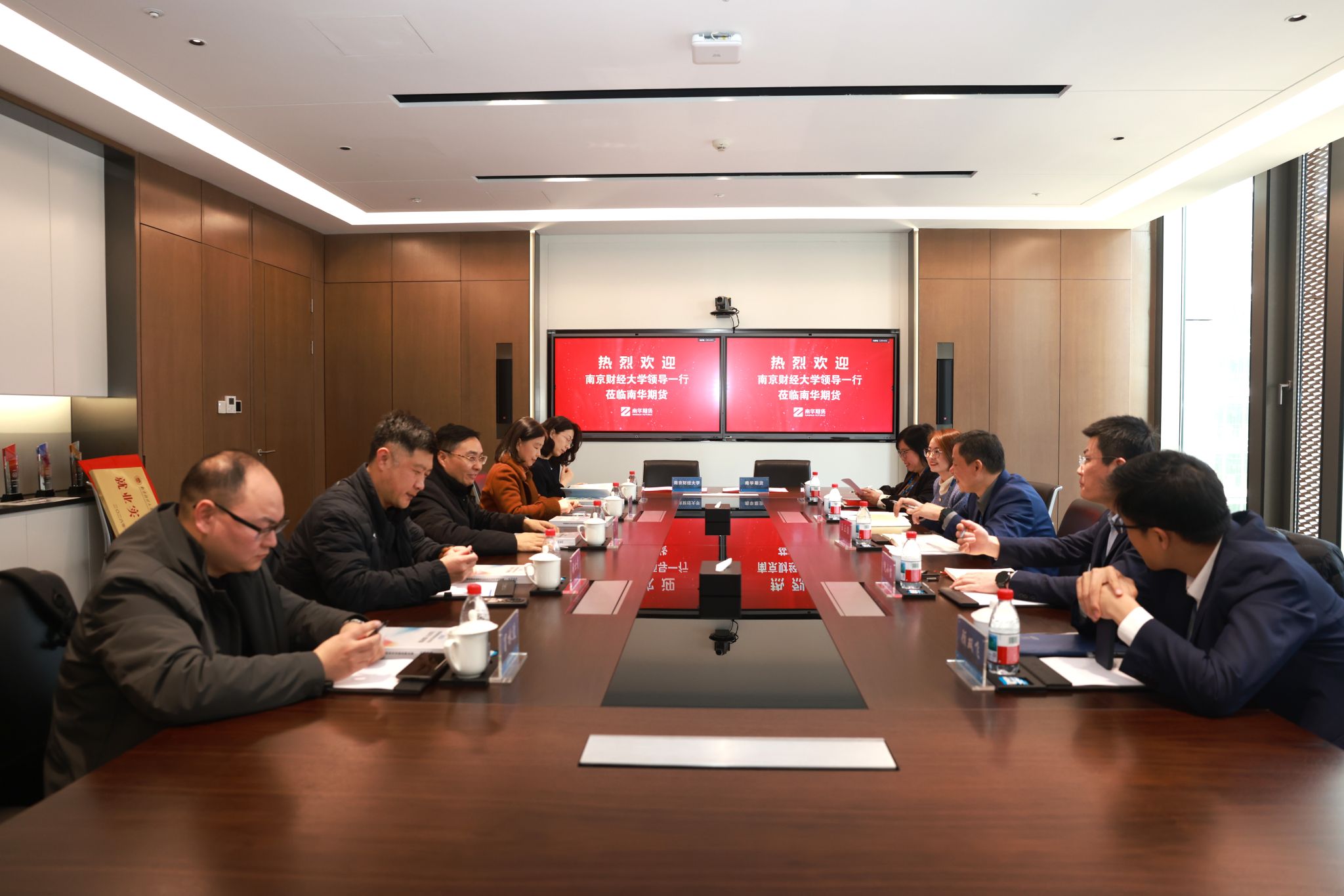 校企合作签约授牌仪式在南华期货股份有限公司举行。南华期货副总经理王正浩、南通营业部总经理倪小雷、投资学院执行院长章玲飞、研究院副院长顾双飞、人力资源部经理叶向微等企业代表参加仪式。朱军部长一行参观了南华期货总部大楼及投资者教育基地,随后双方签订就业实习基地协议并完成授牌。座谈交流环节,校企双方分别介绍了各自发展情况,围绕学生实习实践、就业推荐、人才联合培养、普惠金融推广与国民金融素养教育等议题展开深入交流,达成多项合作共识。朱军部长表示,此次合作为学校搭建了金融实践与行业对接平台,学校将以此为契机优化人才培养方案,引入行业前沿知识,推动教学与实践深度融合,培养高素质金融人才,助力学生高质量就业,为行业发展贡献力量。